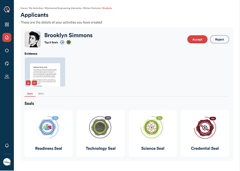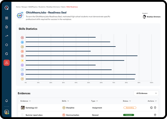 PortfoliOH is a comprehensive solution that enables students to own their work-based learning journey. Intuitive interfaces allow students to see WBL opportunities in terms of the skills they will acquire when they participate. During any WBL activity, no matter where or when it occurs in or out of schools, the student captures rich evidence of their experience and self-reported reflections. By seeing experiences as skills acquisition, PortfoliOH reveals to students how the skills they have acquired relate to career pathways they may be interested in. The solution also
